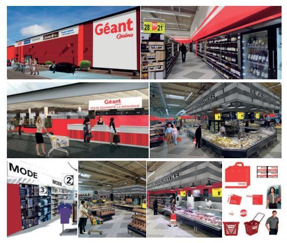 - Refonte complète de l'enseigne Géant Casino avec un nouveau concept commercial et une identité visuelle modernisée